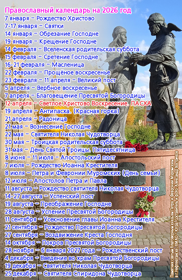Православный календарь на 2026 год