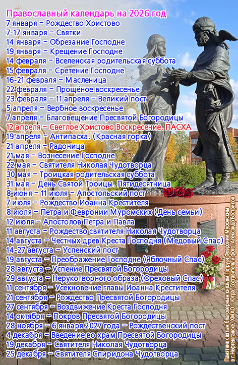 Православный календарь на 2026 год